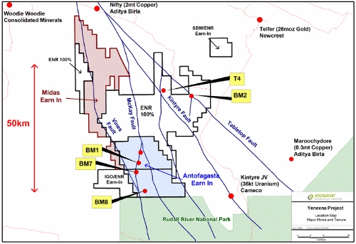 Under that agreement, Antofagasta may earn a 51 per cent interest in two tenements within the Yeneena project by incurring expenditures of US$20 million over a five year period.