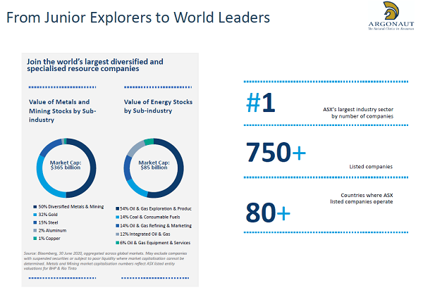 That means approximately 40 per cent of all companies listed on ASX are resource companies that are currently operating in 80 different countries.