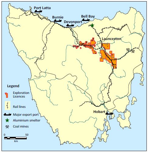 The tenements are situated in central Northern Tasmania and cover some 1,897 square kilometres.
