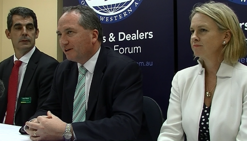 Flanked by fellow Nationals Senator, Fiona Nash and Nationals hopeful for the seat of O’Connor Chub Witham, Joyce was quizzed by the attendant phalanx of journalists on a number of subjects, including the need to bolster the prospecting component of Australia’s mining industry.