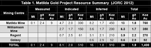 Blackham’s resource inventory at the Matilda gold project currently stands at 24 million tonnes at 1.9 grams per tonne gold for 1.4 million ounces of gold.