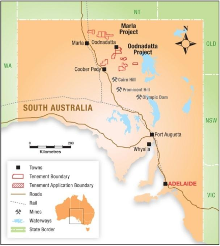 Marla and Oodnadatta location map. Source: Company announcement
