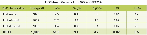 The total Mineral Resource estimate for the PIOP now stands at 1,040 million tonnes at 55.6 per cent iron.
