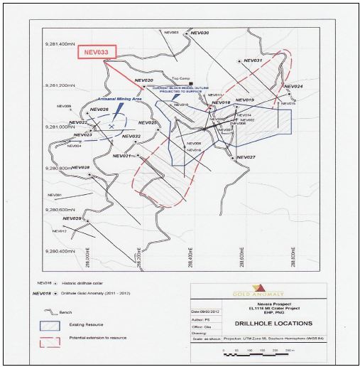 According to Gold Anomaly hole NEV033 contained strongly anomalous copper and gold values in the bottom 280 metres of the hole.