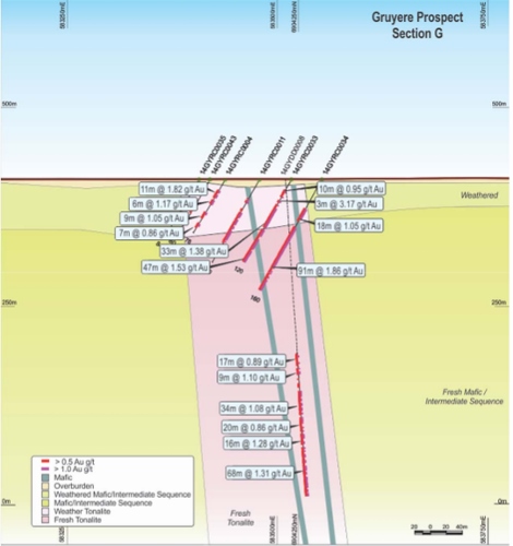 The company is progressing on detailed geological interpretation and modelling to improve its overall understanding of the Gruyere prospect mineralisation to enhance local and regional exploration targeting, and to provide the basis for resource modelling activities.