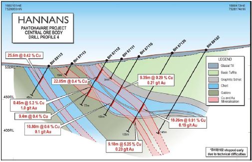 “The significant historic drill intercepts demonstrated in drill profiles 4 and 5 confirm the shallow, high-grade copper-gold mineralisation at the Central orebody,” Hannans Reward said in its ASX announcement.
