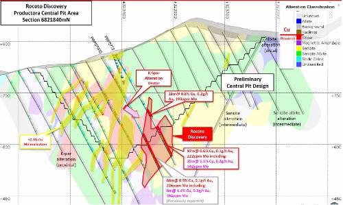 New drilling intersections at Rocoto in relation to the planned central pit design at Productora. Source: Company announcement