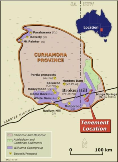 Location of the Broken Hill nickel-copper-PGE JV project. Source: Company announcement