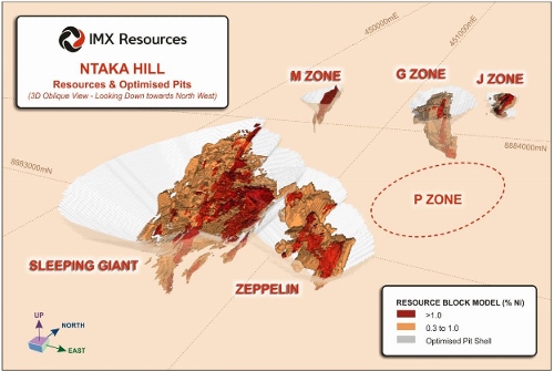 IMX said modelling of P Zone indicates it is potentially an up-dip extension of the mineralisation at Zeppelin and Sleeping Giant to the west and south-west.