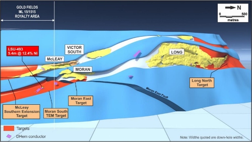 This intercept comes from the third underground diamond drill hole out of a proposed nine hole exploration program to identify the Long-Moran komatiite channel south and down plunge of the Moran orebody, east of the Moran East fault.