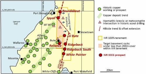 THE DRILL SERGEANT: Investigator Resources (ASX: IVR) has completed geophysical surveys in the ‘copper triangle’ on the Yorke Peninsula of South Australia, which the company says has upgraded the iron oxide copper gold (IOCG) potential of its 100 per cent-held Roundabout and Spyall prospects.