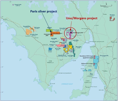 Location map of Investigator tenements, highlighting the Uno/Morgans project. Source: Company announcement