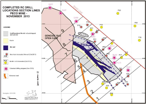 Phase 2 drilling was designed to test the reef alongside the northern boundary of the Open Pit.
