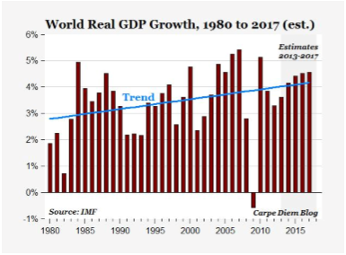 Global growth is beginning to recover – China is still growing at around seven per cent a year, there’s modest growth in the US, and even Europe is showing some signs of life. The outlook for world economic growth in the chart below paints a quite positive picture. Uncertainty about the potential longevity of monetary stimulus has taken some of the shine off risk appetite, but global central banks should continue to provide support given the global recovery is nowhere near being self-sustaining.