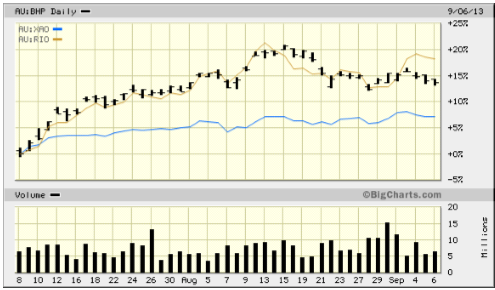 4.    Sector heavyweights BHP and RIO are performing solidly