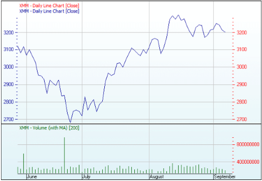 The chart below highlights the decline in the ASX 300 Mining Index during the latter stages of the previous financial year, followed by a subsequent strong rebound. This is not surprising, as tough markets often result in a ‘clean out’ of underperforming stocks on the part of investors as part of tax-loss selling prior to 30 June.