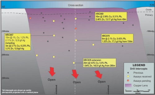 Southern Lode long-section showing recent copper intercepts. Source: Company announcement