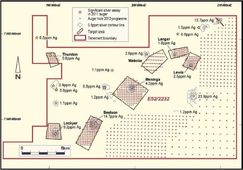 701 Mile Silver anomalism and fill auger drilling targets May 2012. Source: Company announcement