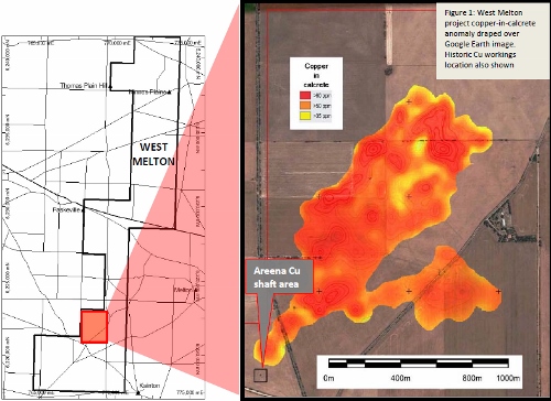 The company said assay results it received from 25 metre spaced infill calcrete sampling confirmed the existence of a copper in-calcrete anomaly coincident with gravity and magnetic features, which extends for more than 1.2 kilometres.