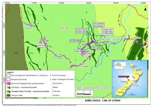 New Zealand Petroleum & Minerals agreed to extend the Sams Creek exploration permit for five years to March 2017 following the successful completion of the stage one drilling program.