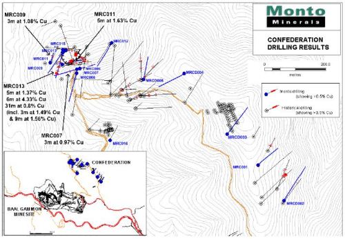 Monto has completed the drilling program at Confederation and indicated that it will release results as they are received from the laboratory.