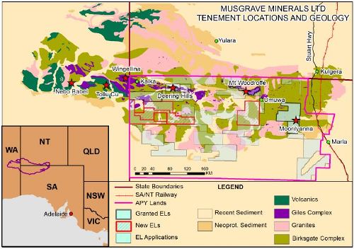 Location of Musgrave Minerals’ exploration licences. Source: Company announcement