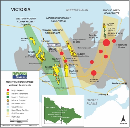 Location of Navarre’s Victorian mineral projects relative to the Miga