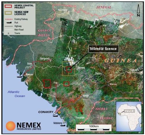 Regional location of Nemex’s Coastal iron project (red outlines),