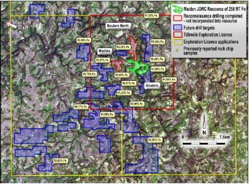 The maiden resource estimate covers iron mineralisation over 2.5 square kilometres of just one prospect, Boulere, which represents approximately 5 per cent of the company’s identified Exploration Targets.