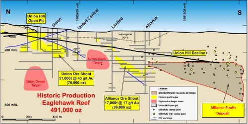 Eaglehawk Reef with the Union and Alliance shoots and the Alliance South deposit. Source: Company announcement