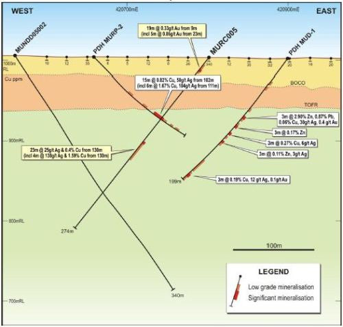 Peel said the drilling had returned encouraging results confirming Mundoe to be a valid copper-polymetallic target.