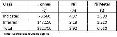 222,710 tonnes of nickel sulphide ore at 2.92 per cent nickel.