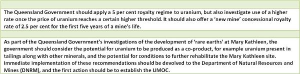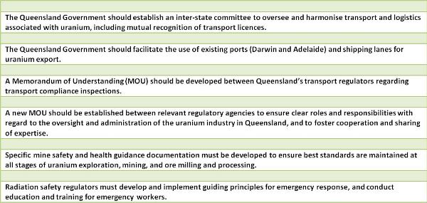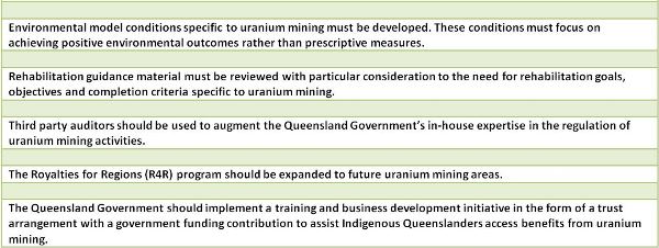 Despite there being no need for legislation the committee has recommended the existing framework can be adapted to ensure uranium mining can recommence in Queensland within a best practice framework.