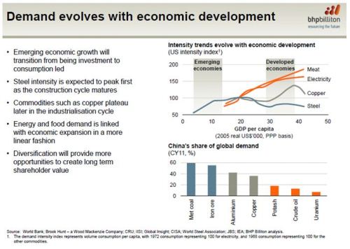 The second slide from BHP’s recent copper presentation highlights the change in economic growth as economies mature.