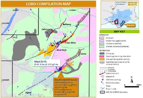 “If successful this program has the potential to increase the known Lobo gold resources significantly as the West Drift target area is at least four times larger than the existing South West Breccia resource area immediately to its south.”