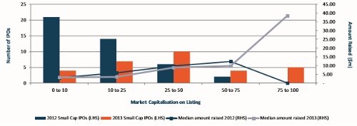 “It would appear that small caps, historically the largest contributor by number of listings, have struggled to pursue IPOs throughout 2013 and it is unclear to what extent a small cap recovery will occur in 2014, particularly one originating from the resources sector,” he said.