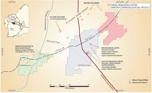The Marymia project is located east of Barrick’s 4.7 million ounce Plutonic gold mine, north-east of Sandfire Resources’ (ASX: SFR) DeGrussa copper-gold mine and east-north-east of Ventnor Resources’ (ASX: VRX) Green Dragon and Thaduna copper deposits in the Mid-West region of Western Australia.