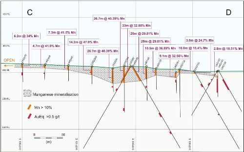 –    4.7m at 41.9 per cent manganese from 1.3m.