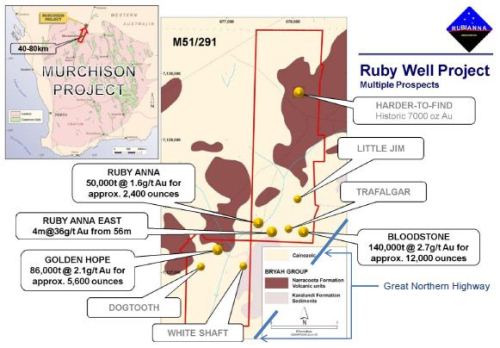 “In addition the area provides plenty of potential to add additional ounces to the resource inventory, especially the Ruby Anna East prospect, where recent drilling intersected 4 metres at 36 grams per tonne gold from 56 metres, which remains open at depth.