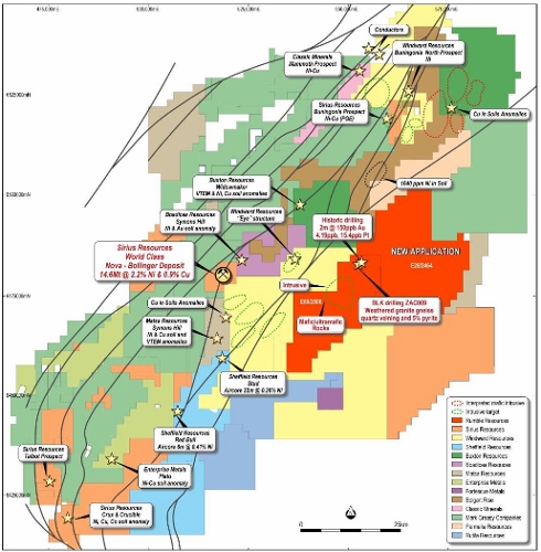 Its confidence stems from the neighbourhood it has landed in with the application bordered by Sirius Resources, Matsa Resources, Buxton Resources and the Mark Creasy-controlled private company Ponton Minerals.