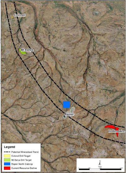 Ariel view of potential mineralised trend north of the Hollandaire deposit. Source: Company announcement