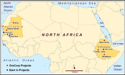 OreCorp holds various interests in gold and base metals projects located in Ethiopia and Mauritania.