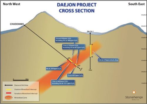 THE DRILL SERGEANT: Stonehenge Metals (ASX: SHE) has announced chemical assay results from hole 5 of a 12 hole diamond drilling program currently underway at the company’s Daejon uranium and vanadium project in South Korea.
