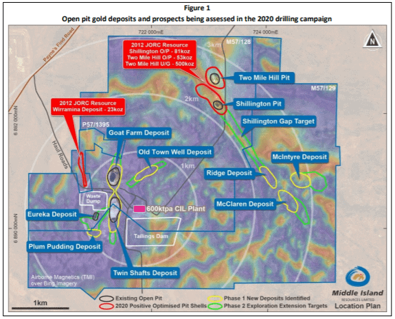 The Ridge and McClaren deposits represent the final two – of five – new satellite open pit deposits quantified by Middle Island’s 50,000m drilling campaign in 2020.