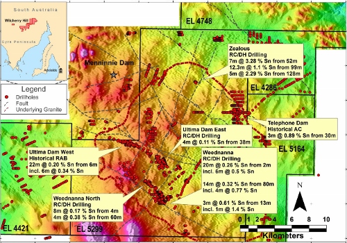 The company believes this demonstrates the potential for multiple shallow tin deposits at Wilcherry Hill.