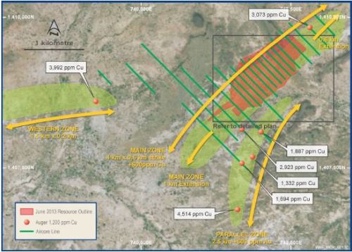 West African indicated the Inferred Mineral Resource also includes 57million tonnes of transitional and primary material at 0.6 per cent copper equivalent for some 316,000 tonnes of copper equivalent metal.